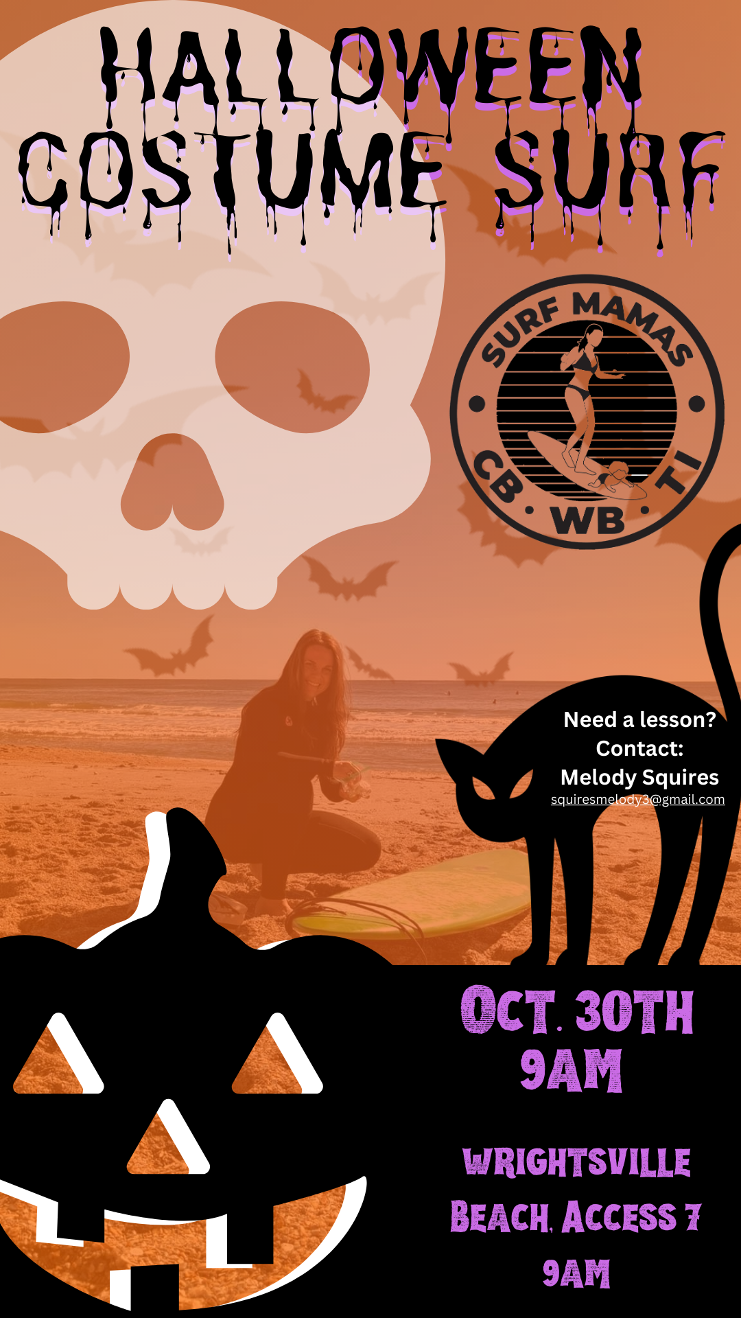 Halloween Surf! Come surf & hang in Wrightsville beach at 10 access. Wear your costume, enjoy some snacks, and catch some waves with us!